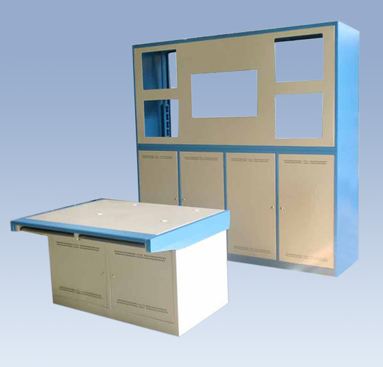 內(nèi)部配置:每聯(lián)下部小柜內(nèi)安裝托盤一塊,便于安裝設(shè)備。可選配19英寸標(biāo)準(zhǔn)安裝立梁。